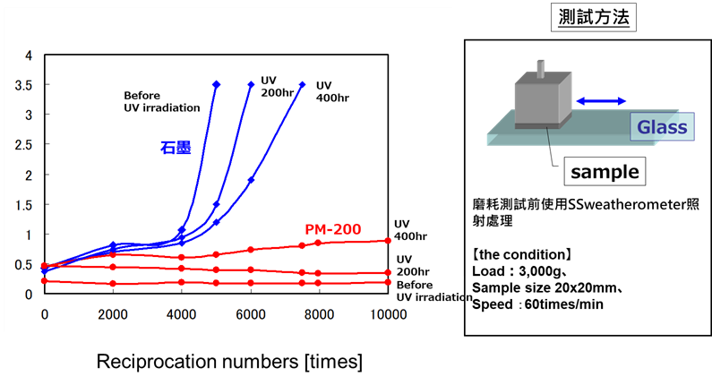 MIPELON™和石墨的耐久性及摩擦係數比較