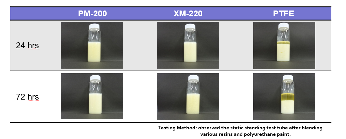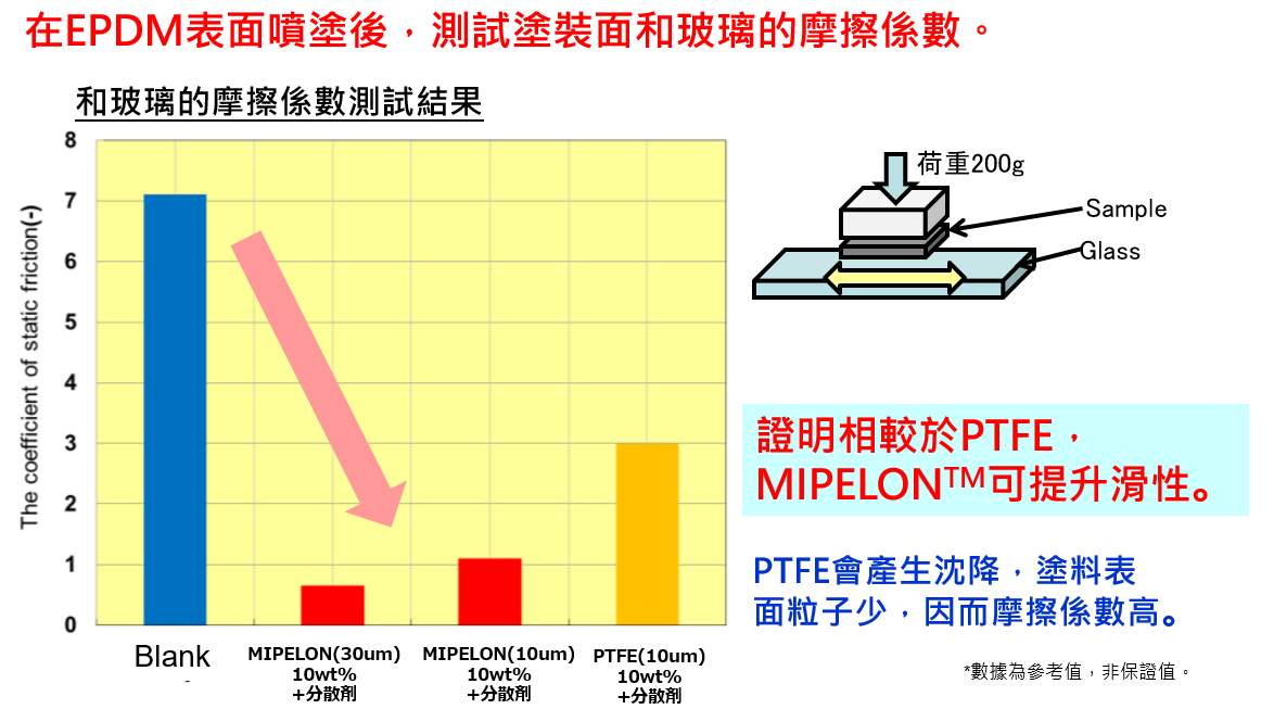 MIPELON™和PTFE在水系PU塗料應用的摩擦係數比較