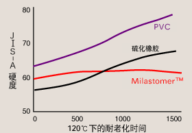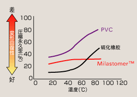壓縮永久變形的溫度依存性小,在高溫區域甚至比硫磺硫化EPT更為優異。