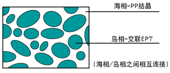 以烯烴類的橡膠(EPT等)、烯烴類的樹脂(PP等)為主要成分,是可以回收利用的交聯型TPO(TPV)。 模型圖