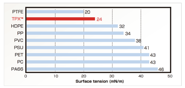 表面張力為24 mN/m,僅次於PTFE,對環氧樹脂等材料的剥離性佳。